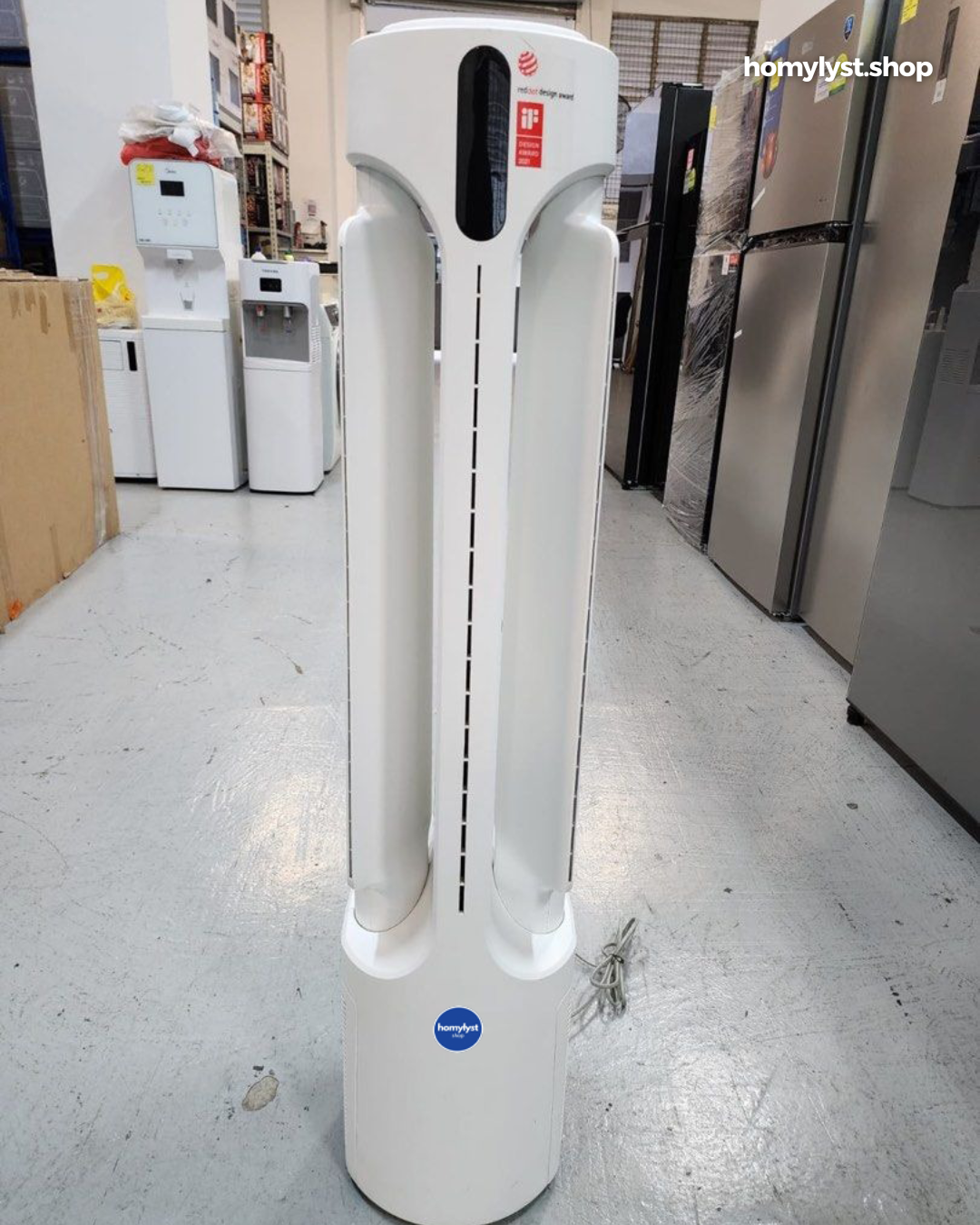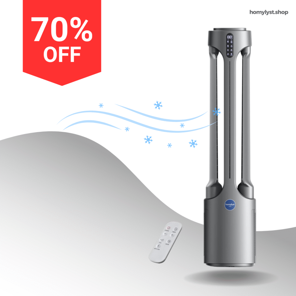 Ein eleganter Klimaturm, der Ihr Zuhause im Sommer kühlt und im Winter wärmt – energieeffizient, sicher und mobil.