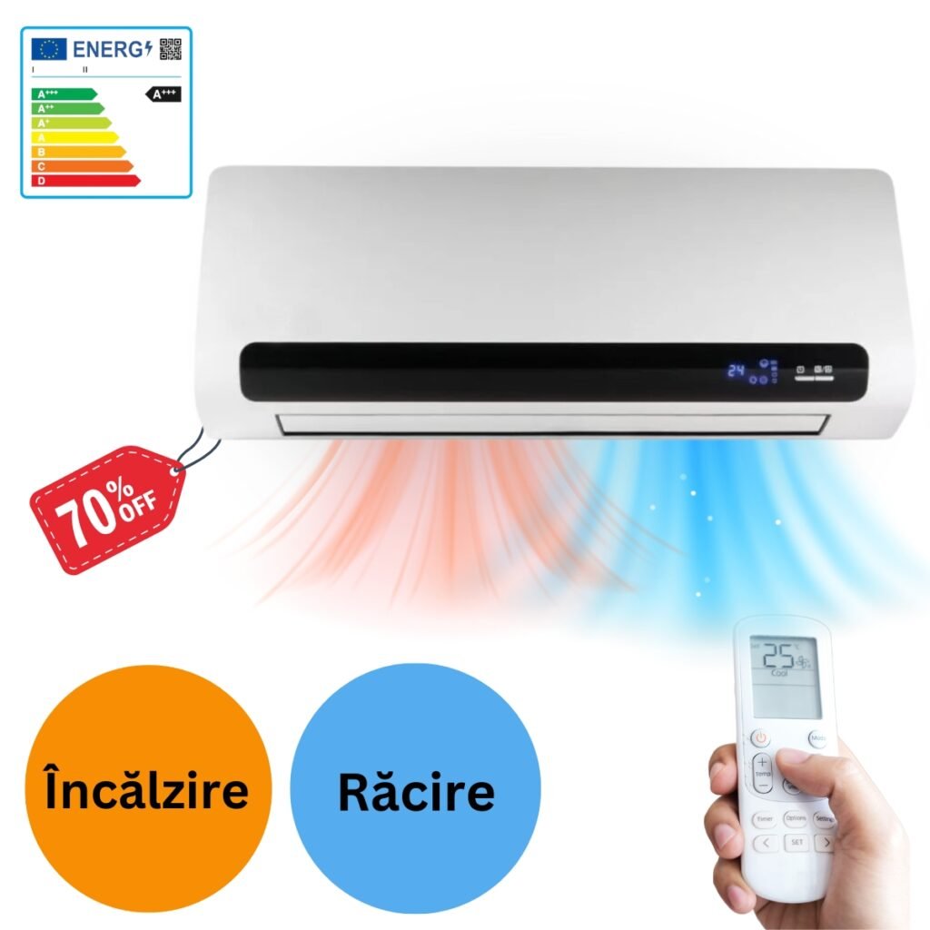 Control inteligent cu panou tactilși telecomandă compactă, perfectă pentru utilizare zilnică. Designul cu două trepte de viteză îți oferă flexibilitate maximă pentru reglarea atât a încălzirii, cât și a răcirii.